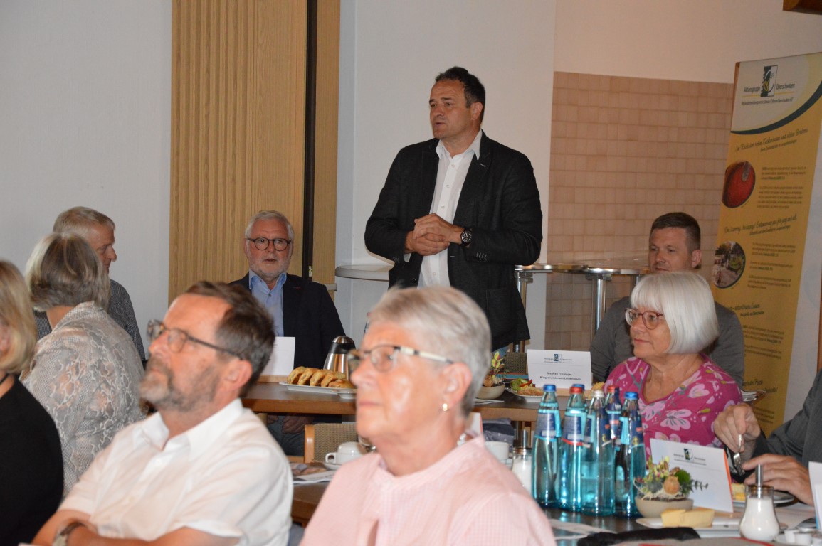 Bürmeister Bernhard Ritzler informiert über die erfolgreiche Umsetzung und Neuausrichtung des Gasthauses Krone in Lauterach, ebenfalls ein mit LEADER-Mitteln unterstütztes Projekt. Der Ehrenvorsitzende Heinrich Güntner BM a.D. berichtet über das Richtfest der großen Scheune auf dem Gelände des Campus Galli. Alfred Nuber, Rechnungsprüfer und diesmal auch Ansprechpartner für das erfolgreich umgesetzte Kleinprojekt des "Verein zur Pflege der Partnerschaft Segonzac-Kanzach e.V." berichtet über den "Brückenstein", welcher mit Mitteln des Regionalbudget errichtet werden konnte.