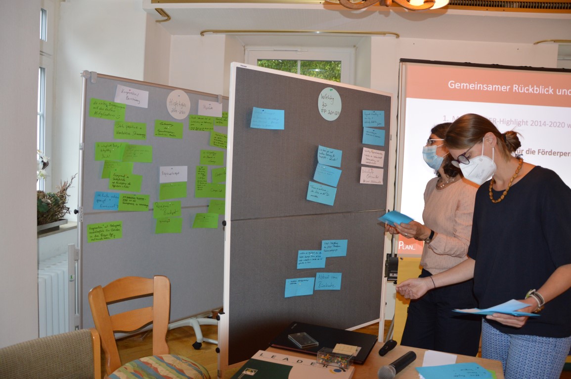 Um weiterhin Projekte im Gebiet der Aktionsgruppe voranbringen zu können, hatten die Mitglieder in der letztjährigen Hauptversammlung einstimmig beschlossen, sich wieder um die Förderung zu bewerben. Hierfür wurde bereits Anfang des Jahres 2021 fristgerecht die Interessenbekundung eingereicht. Im zweiten Schritt folgt nun die Erarbeitung des Regionalen Entwicklungskonzeptes, mit welchem sich die LEADER-Aktionsgruppe um die Förderung bewerben wird. Weiterhin dem "Bottom up - Prinzip" folgend, ist Beteiligung sämtlicher Interessengruppen,der Mitglieder, der Bürgerinnen und Bürger etc. an der Konzepterarbeitung ein wesentlicher Bestandteil. Der Grundstein wurde im Rahmen dieser Mitgliederversammlung gelegt. Dr. Barbara Malburg-Graf vom Planungsbüro PLAN_N, welches mit der Konzepterstellung beauftragt ist, lud die Mitglieder ein, sich bei 3 orientierenden Fragen zu beteiligen und damit den Grundstein in die thematische Ausrichtung zu legen. Weitere Beteiligungsmaßnahmen sind geplant, es bleibt auf jeden Fall spannend...